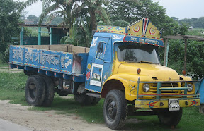 La balade en bus est bien sympa. On sort de Dhaka, on croise la fameuse riviere dont je ne retiens pas le nom. Comme toujours, une vie intense et coloree sur les bords de la route. L'occasion pour moi de me rendre compte qu'il y a une version "yellow cab" des CNG et de voir de jolis camions decores.